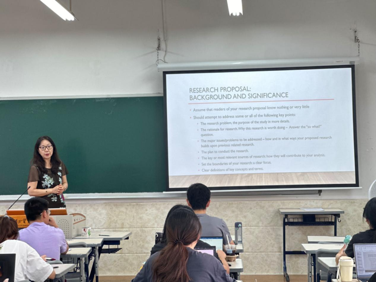 课上,姜教授将学术写作分解为摘要、引言、文献综述、理论和假设、研究方法、结论和发现、政策影响、缺陷和未来研究方向等多个环节,逐一进行了详尽的阐述。她更是以自己的研究论文为案例,结合前期课程内容,为学员们展示了一个完整的学术写作过程。这种理论与实践相结合的教学方式,极大地激发了学员们的学习兴趣和创作热情。