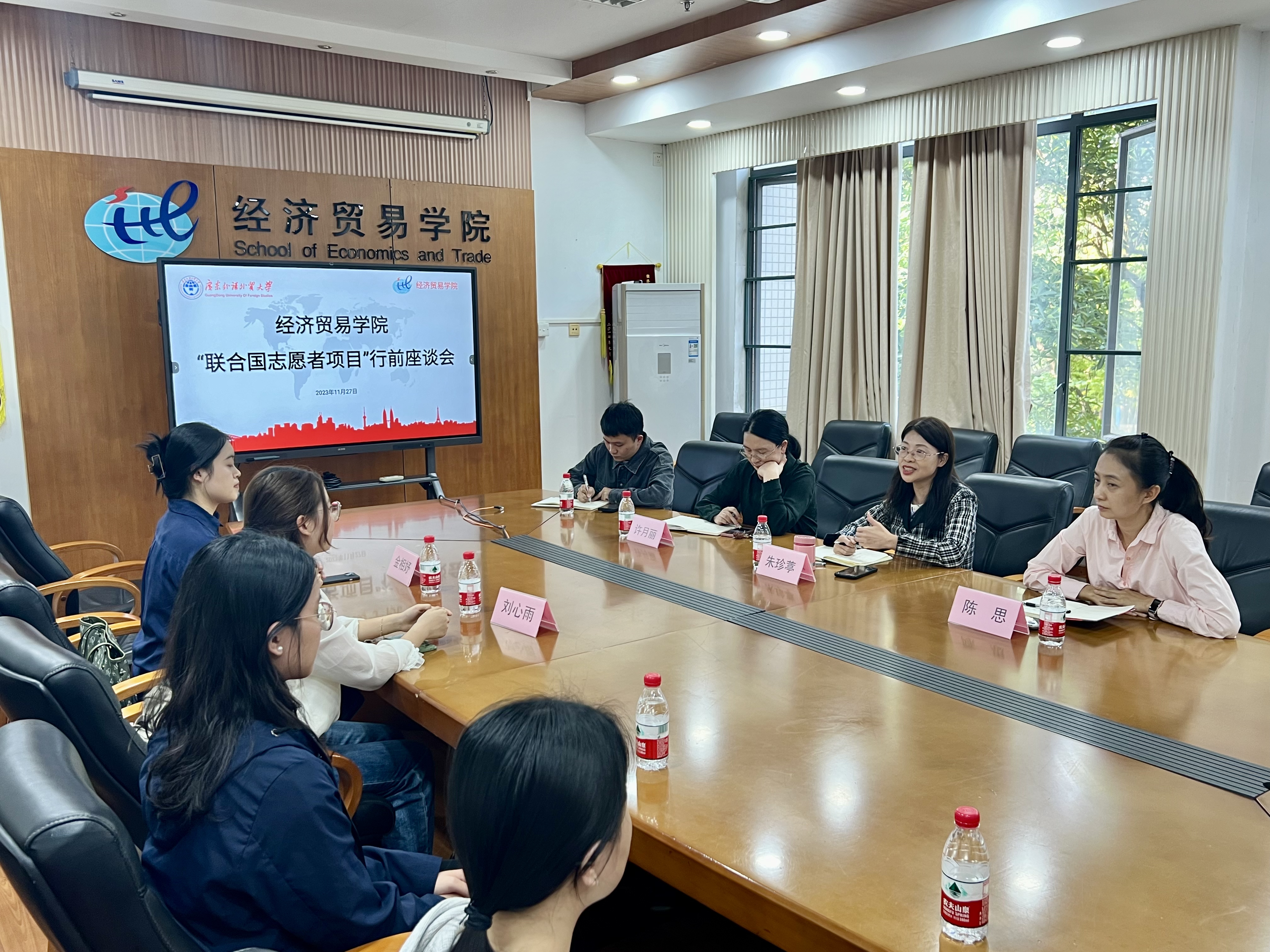 11月27日,我院在院系楼301会议室举行“联合国机构志愿者”出征前座谈会,学院党委书记朱珍葶,副院长许月丽,党委副书记陈思,辅导员缪冠中、黄星及学生代表出席座谈会。