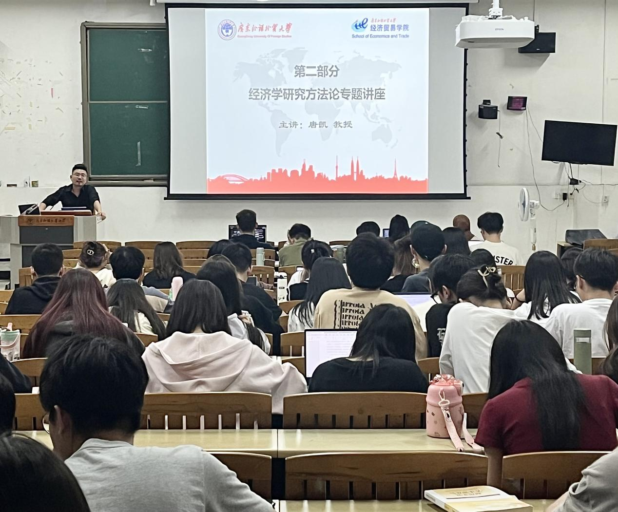 11月27日晚上,我院在大学城校区教学楼C507举行研究生专题讲座,由唐凯教授为学院硕士研究生、博士研究生专题讲授“经济学研究方法论”相关内容。学院研究生办公室主任梁俊伟主持讲座。